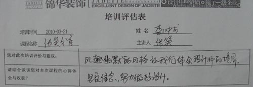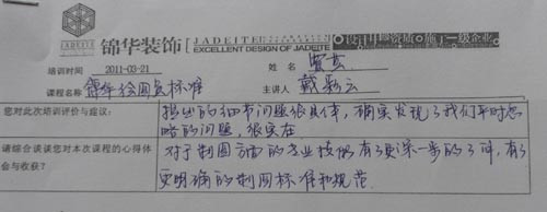 3月21日,公司在所有在編繪圖員和部分有潛力的實習生范圍中召開了一場繪圖員培訓。本次培訓由人力資源部牽頭,首先邀請了研發中心戴彩云老師對繪圖員的制圖規范和標準做了講解,對每季度繪圖員上繳作品情況也做了案例分析,其次是安排了主任設計師崔堯、高級設計師單清和堂杰工作室首席設計師張笑做了培訓分享。最后由人力資源包總闡述了設計部儲備人才的“雛鷹計劃”的具體實施步驟及考核方案。優秀的繪圖員作為錦華內部的設計師儲備人員,將會在錦華這個優秀的平臺上得以平穩成長,錦華需要的是有志向、有方法、有心態的務實性人才,只要踏實認真一步一個腳印的遵循公司的成長體系,相信,“雛鷹”終將會成長為一只在錦華天空中自由翱翔“雄鷹”!