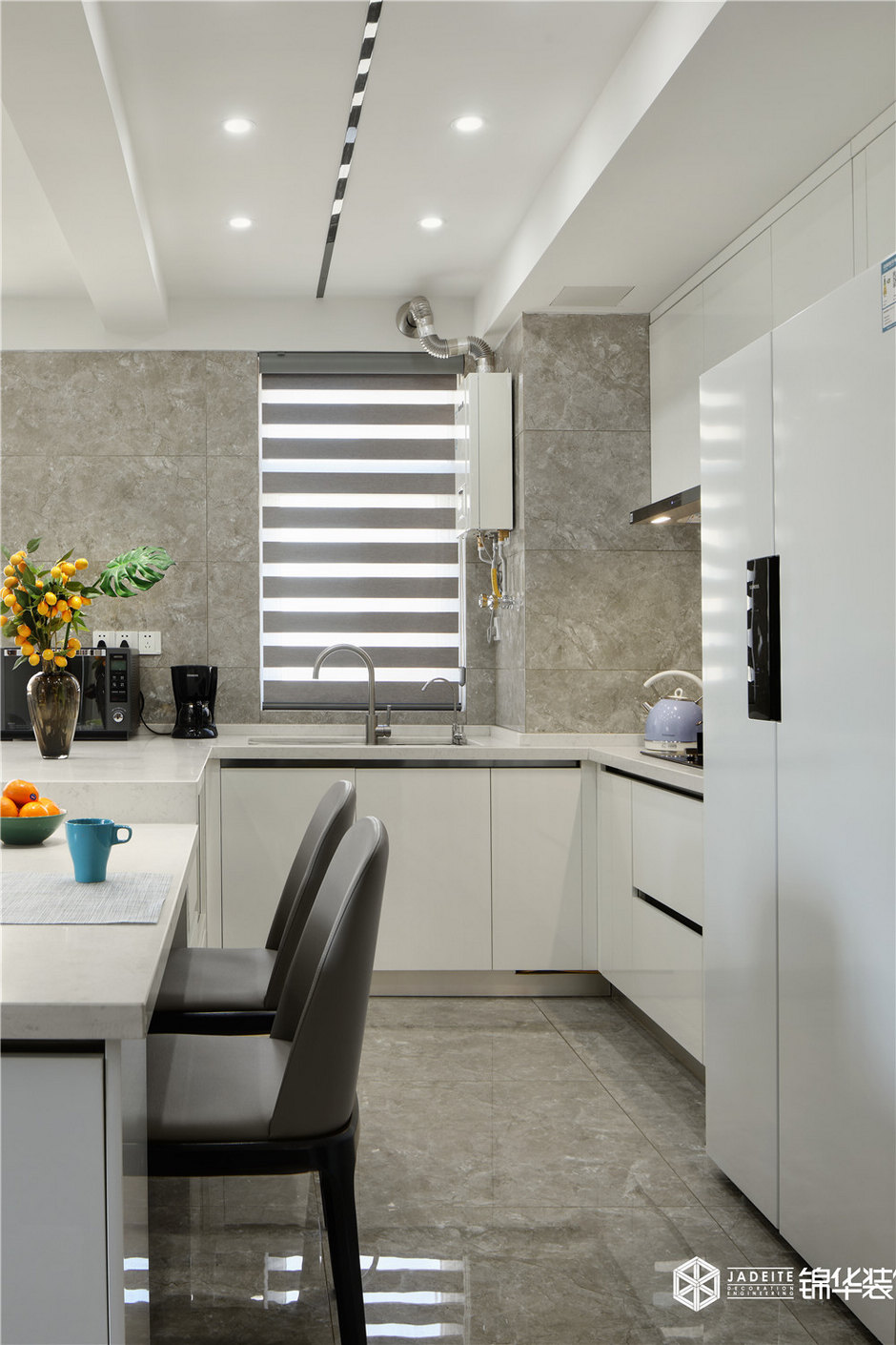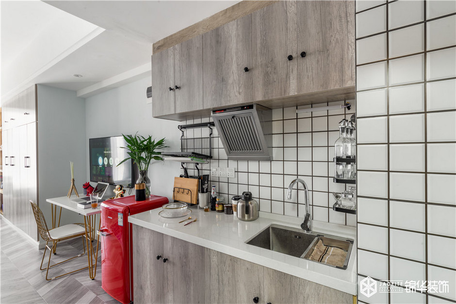 ▲廚房以白色調為主,并選用了經典的小白磚,所以即使面積有限,卻格外清爽整潔!