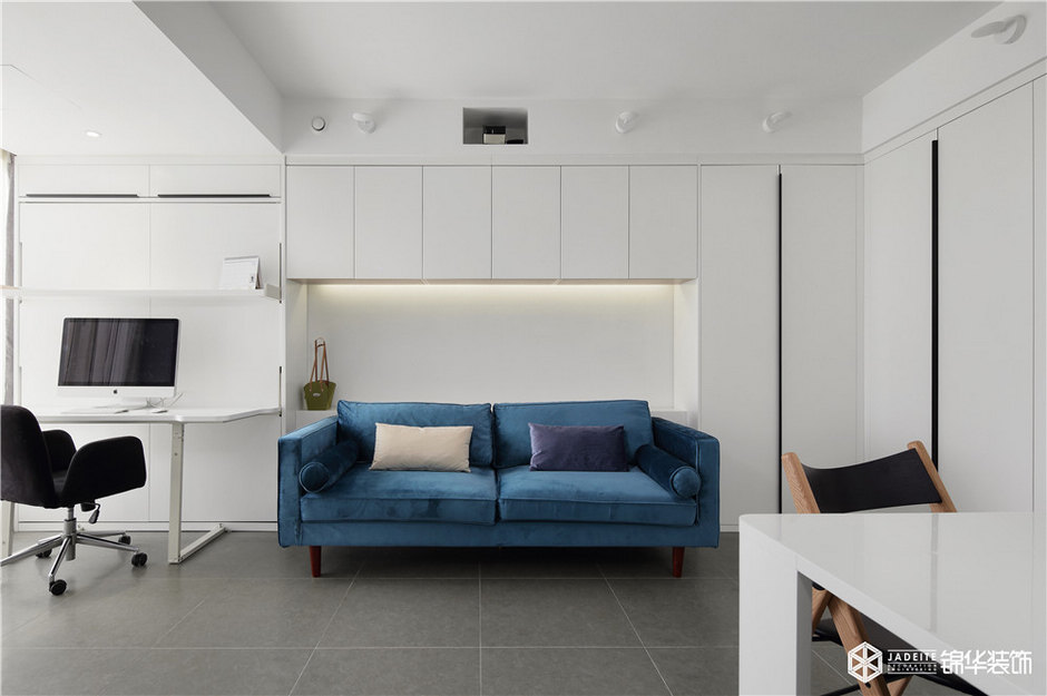 雖然本案是一個只有50平的公寓,但該有的功能全部具備,比如大型綜合儲物柜、全景書房、觀景飄窗閱讀臺、強大功能的廚房。