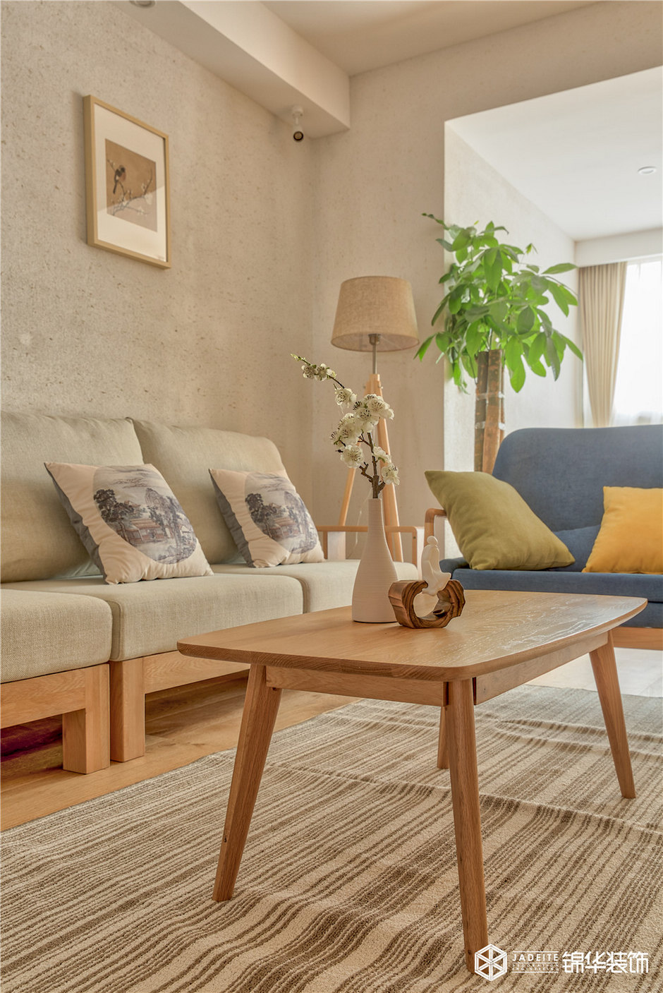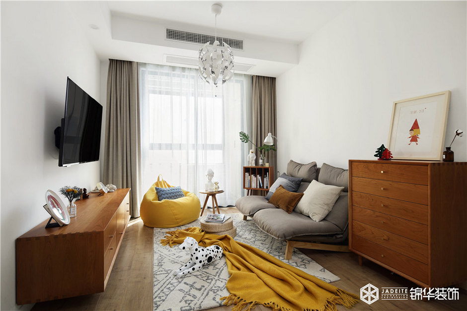 ▲色調以黃色、灰色、木色為主,溫暖又活潑。布藝、亞麻、木質等天然材料的運用,又為空間平添了一種慵懶的繾綣!